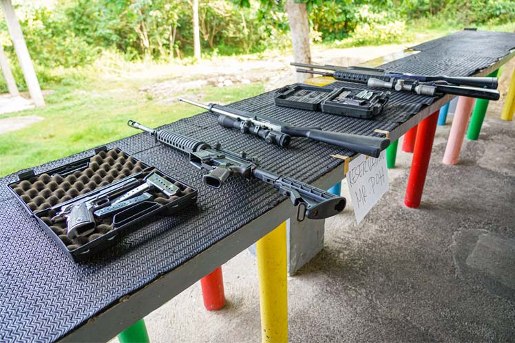 反動(リコイル)が不安な方や、腕力に自信がない方でも安心して射撃を楽しめるよう、セブ島の射撃場では土台を使った射撃方法を選ぶことができます。