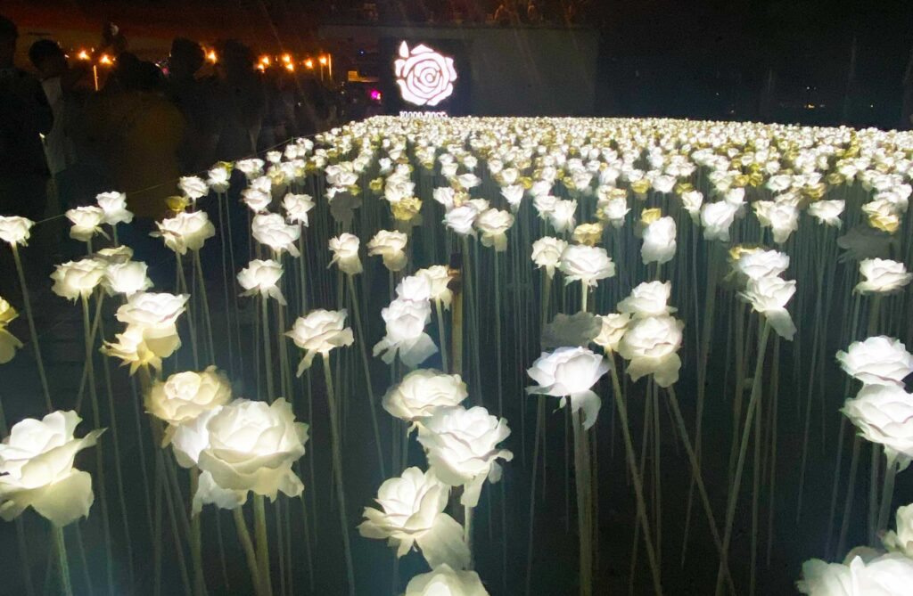 10,000本のLEDバラが夜になると一気にライトアップされるフォトジェニックすぎる人気スポットです。
