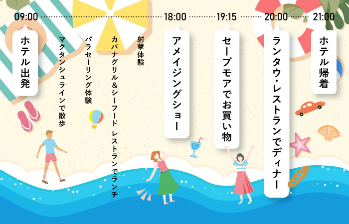 ビーチでのんびりしたり、アクティビティに挑戦したり、美味しい食事やショッピングも満喫できて、毎日がワクワクの連続です。