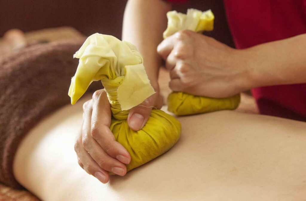 温かいハーブボールを使って、香りと温熱で全身を包み込むように施術。アロマ効果と血行促進のW効果で、ストレス解消に最適です。
