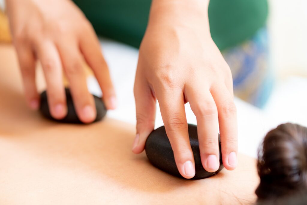 温めた天然石で体を温めながら筋肉をほぐすマッサージ。深部まで熱が届き、リラックス効果と疲労回復の両方に◎。
